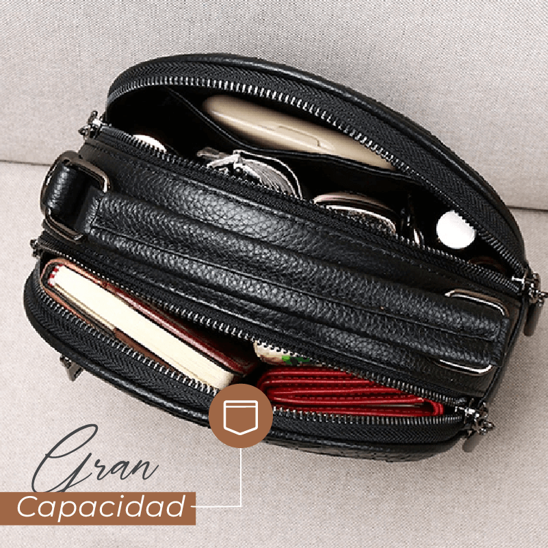 Nuestro bolso cuenta con doble cierre y con compartimientos amplios, para que puedas guardar tus pertenencias de una forma ordenada y mantenerlas siempre al alcance de tus manos.